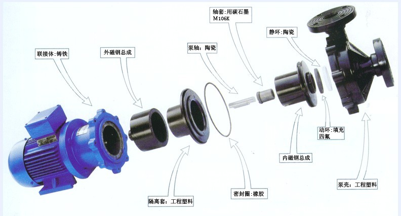 防爆自吸磁力泵工程塑料磁力泵防爆氟塑料磁力驅(qū)動(dòng)泵結(jié)構(gòu)分析圖