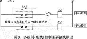 多線制(硬線)操控首要由聯(lián)動(dòng)操控柜、中問繼電器、操控線等硬件組成。它的首要接線原理見圖5。