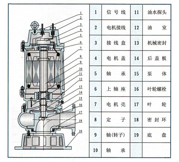 QW無堵塞潛水排污泵結(jié)構(gòu)圖