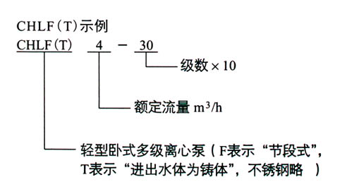 【CHLF型輕型段式不銹鋼多級(jí)離心泵】型號(hào)意義: