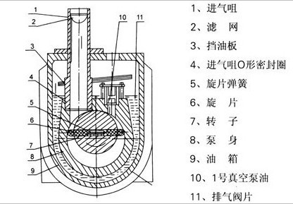 2XZ型旋片式真空泵的工作原理及結(jié)構(gòu)圖