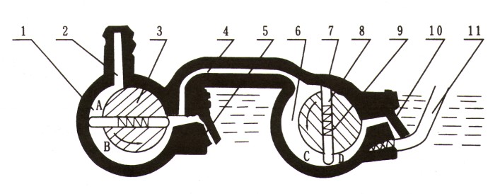 | 2X型旋片式真空泵注意: (1)真空度是指被抽容器內(nèi)剩余氣體壓強,以分壓強為我廠出廠標準,總壓強為輔助標準,熱偶計測的是各種蒸汽和永久氣體的總壓強,而麥氏表只能測出永久氣體占的分壓強,故二表的數(shù)值有一定的差異。 (2)抽氣速率是根據(jù)幾何尺寸算出的在大氣壓強j時,實際抽速與幾何抽速基本相符合,在各種不同的壓強時,抽速有一定下降,抽速與壓力關系見下圖2X旋片式真空泵的性能曲線圖。 (3)溫升是指泵溫穩(wěn)定后,在排氣閥門處的油的溫度與室溫之差。 (4)2X型旋片式真空泵型號表示方法:列2X—4,2代表雙級泵,X代表旋片式真空泵,一橫線后面的數(shù)字4代表每秒鐘的抽速。 五、2X型旋片式真空泵的性能曲線圖: ![]() 六、2X型旋片式真空泵的特點: 2X型旋片式真空泵是用來對抽除密封容器氣體而獲得真空的基本設備也是目前國內(nèi)使用廣泛的真空泵,有水冷和風冷兩種,本泵同國內(nèi)同類產(chǎn)品相比具有真空度高,使用方便,安裝,維護簡單以及以下優(yōu)點: 1.2X型旋片式真空泵設有氣鎮(zhèn)閥,可抽除少量水蒸氣; 圖(1)是2X型旋片式真空泵的工作原理圖,轉子3及7與高真空室外1及低真空室6相切,轉子3及7沿箭頭方向旋轉,帶動轉子槽內(nèi)滑動的轉片旋轉,由于彈簧9及離心力的作用, 轉片外端緊貼高低真空室的內(nèi)表面滑動,把轉子與高低真空室所形成的月洼形空間從進氣嘴2到排氣閥門5和從過氣管4到排氣閥門10之間分隔開來,形成二或三個容積,并且周期性的大小變化,當在圖示旋片式真空泵位置繼續(xù)旋轉時A及C容積逐漸增大,被抽容積氣體沒進氣嘴進入泵內(nèi),同時B及D容積逐漸減少,壓力升高,隨后沖開排氣閥門5及10,將氣體排出真空室外,氣體經(jīng)過油面而排于大氣之中,因為油是淹住排氣門的,故能防止氣體返回真空室。當抽氣壓強較高時,高低真空室的閥門都排氣,相當于單級泵,當真空度較高時,全部氣體進入真空室,再由排氣閥門10排出,此時二級串聯(lián)即進入雙級泵工作。 如被抽除的氣體中含有較高的蒸汽氣體時,在氣體受到壓縮而其蒸汽的分壓強超過此蒸汽在泵內(nèi)溫度下的飽和壓強時,此時蒸氣被壓縮成為液體,旋片式真空泵無法排出,而混在真空油內(nèi),使泵的性能大大降低。如果摻入適量的空氣,使蒸汽在受到壓縮時,其分壓強也低于泵溫的飽和壓強,則蒸汽在變成液體前就能被排出泵外去,故本系列2X-4以上的旋片式真空泵都裝有能放入一定量氣體的摻氣閥11見圖(1)。 |