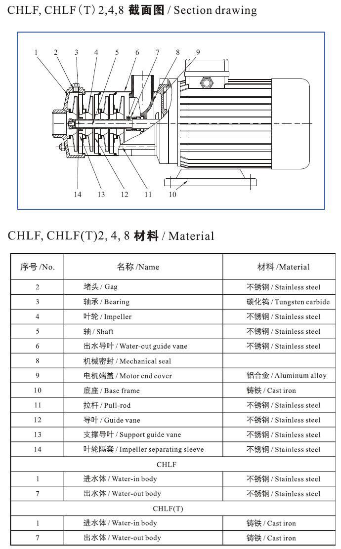 CHLF,CHLF(T)輕型段式多級(jí)離心泵的結(jié)構(gòu)圖