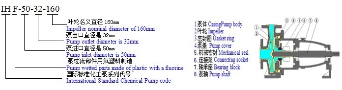 二、IHF氟塑料離心泵型號(hào)意義和結(jié)構(gòu)示意圖