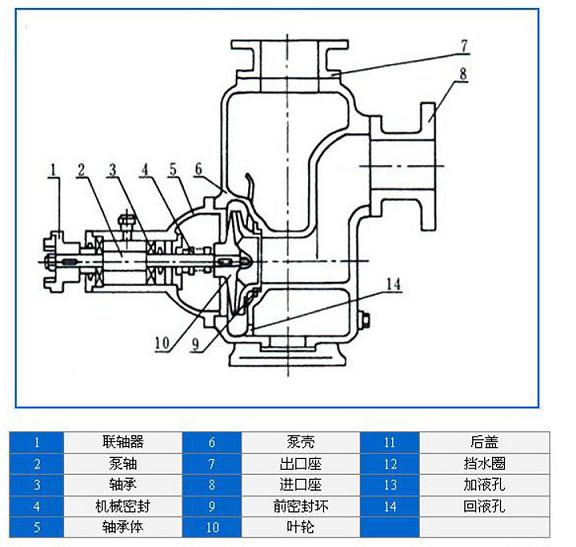CYZ系列防爆油泵采用軸向回液的泵體結構,泵體由吸入室、儲液室、渦旋室、回液孔、氣液分離室等組成。泵的軸承采用單列向心球軸承。在泵的軸承體底部設有冷卻室,泵內部高、低壓區(qū)間有密封環(huán)。CYZ自吸式離心油泵軸端采用機械密封。