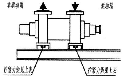為了傳遞力及力矩,緊定螺栓必須擰緊在泵支腳上。為了彌補由于水泵的熱膨脹可能產生的松動,非驅動端不必像驅動端擰得那樣緊。驅動端和非驅動端系緊螺釘的擰緊力矩見下表。
