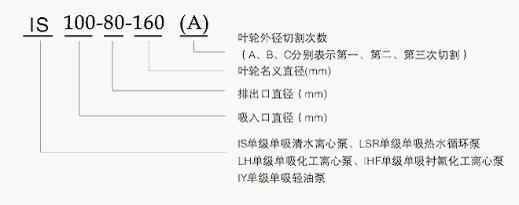 IS/ISR單級(jí)單吸離心泵型號(hào)意義: