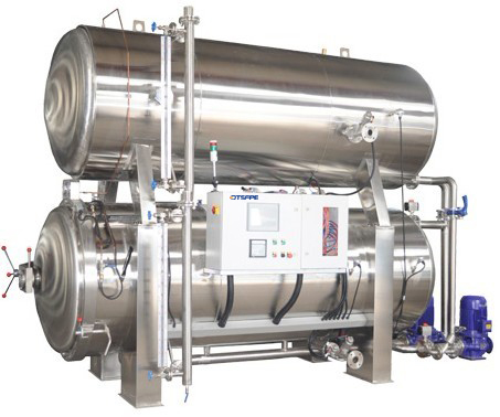 2.下鍋升溫:聯(lián)通閥、循環(huán)進(jìn)水閥、循環(huán)出水閥、管道離心循環(huán)泵、蒸汽閥開啟,鍋內(nèi)壓力自動(dòng)保持設(shè)定壓力,當(dāng)達(dá)到設(shè)定的殺菌溫度后,進(jìn)入保溫步(殺菌步)。
