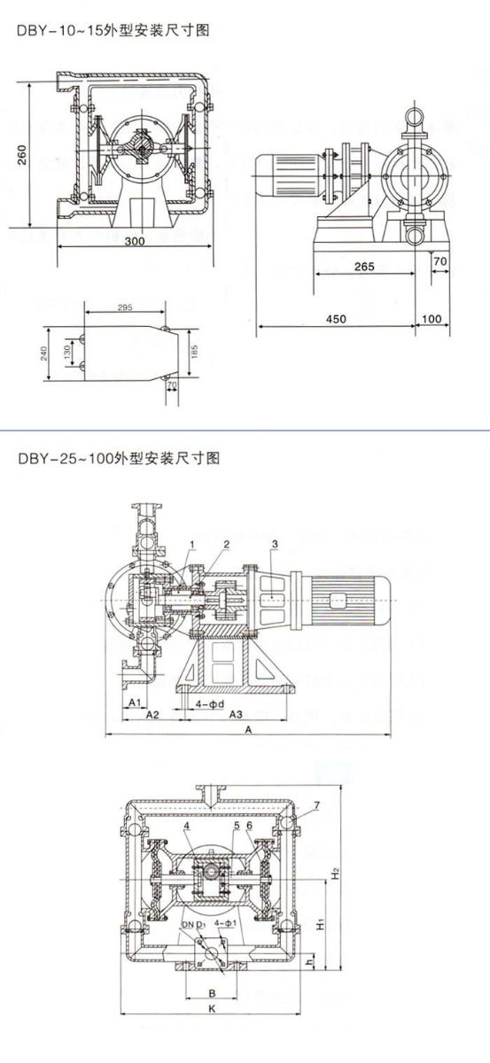 DBY擺線式不銹鋼四氟電動(dòng)隔膜泵安裝尺寸圖
