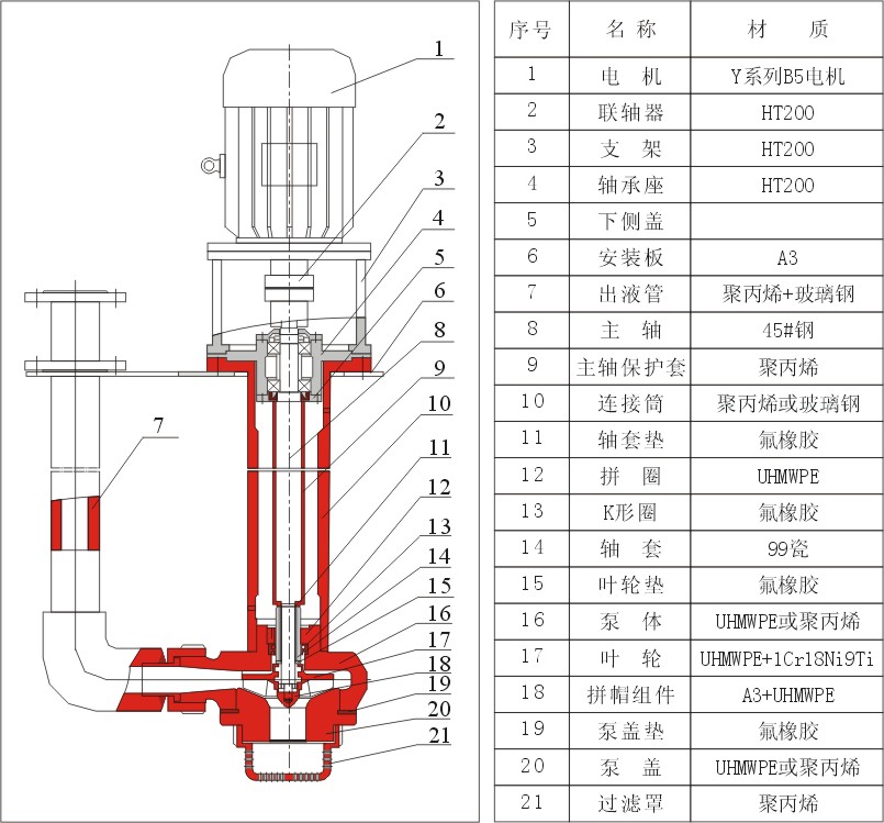 增強(qiáng)聚丙烯耐腐蝕液下泵結(jié)構(gòu)示意圖