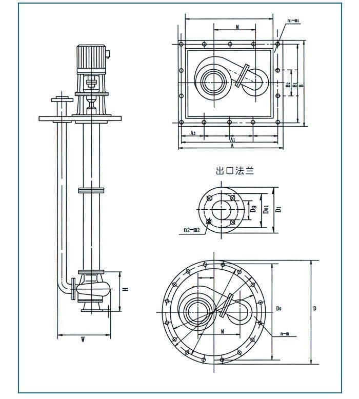 FY型化工耐腐蝕不銹鋼液下泵結(jié)構(gòu)和安裝尺寸圖