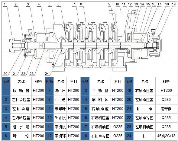 TSWA臥式多級泵結(jié)構(gòu)說明