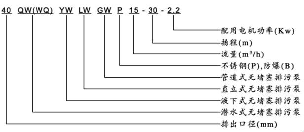 【GW型立式管道排污泵】型號意義: