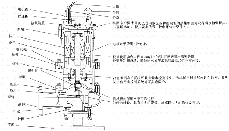 【QW(WQ)系列無堵塞潛水排污泵】結(jié)構(gòu)圖: